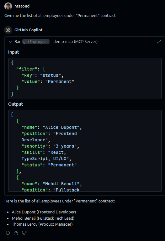 Now try asking it something like: "Give me the list of employees with a permanent contract."
